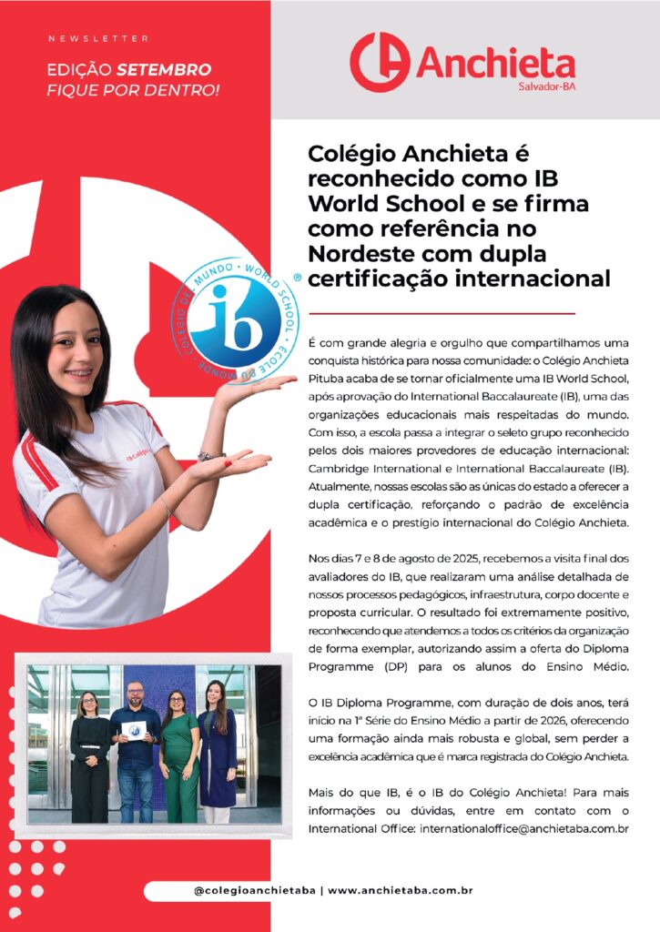 Cada encontro, aprendizado e sorriso constroem a história do Colégio Anchieta. Em nossas newsletters, reunimos momentos do cotidiano da escola: projetos, conquistas e experiências que refletem o cuidado, o afeto e o compromisso presentes em nossa jornada educativa.